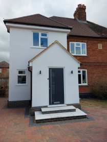 Remodelling the front with Render and new style windows with Ground floor extension housing New Kitchen and dining area whist re-configurating the internal layout to incorporate new Disabled facility.